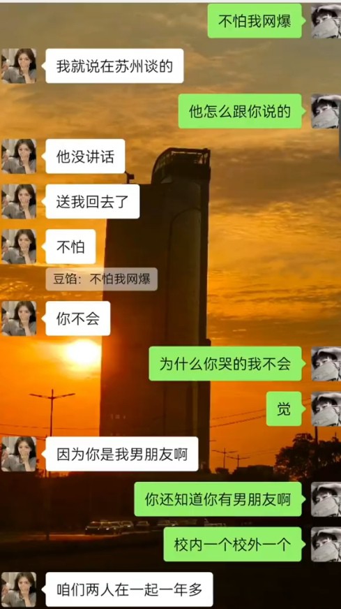 男主在外务工供女友上大学,女友胡文惠却出轨同校大四体育生孟熙 ,只因孟熙给她发了一则打飞机的视频,于是欣然前往酒店开房出轨!孟熙从此被人惯称 “飞机哥”。